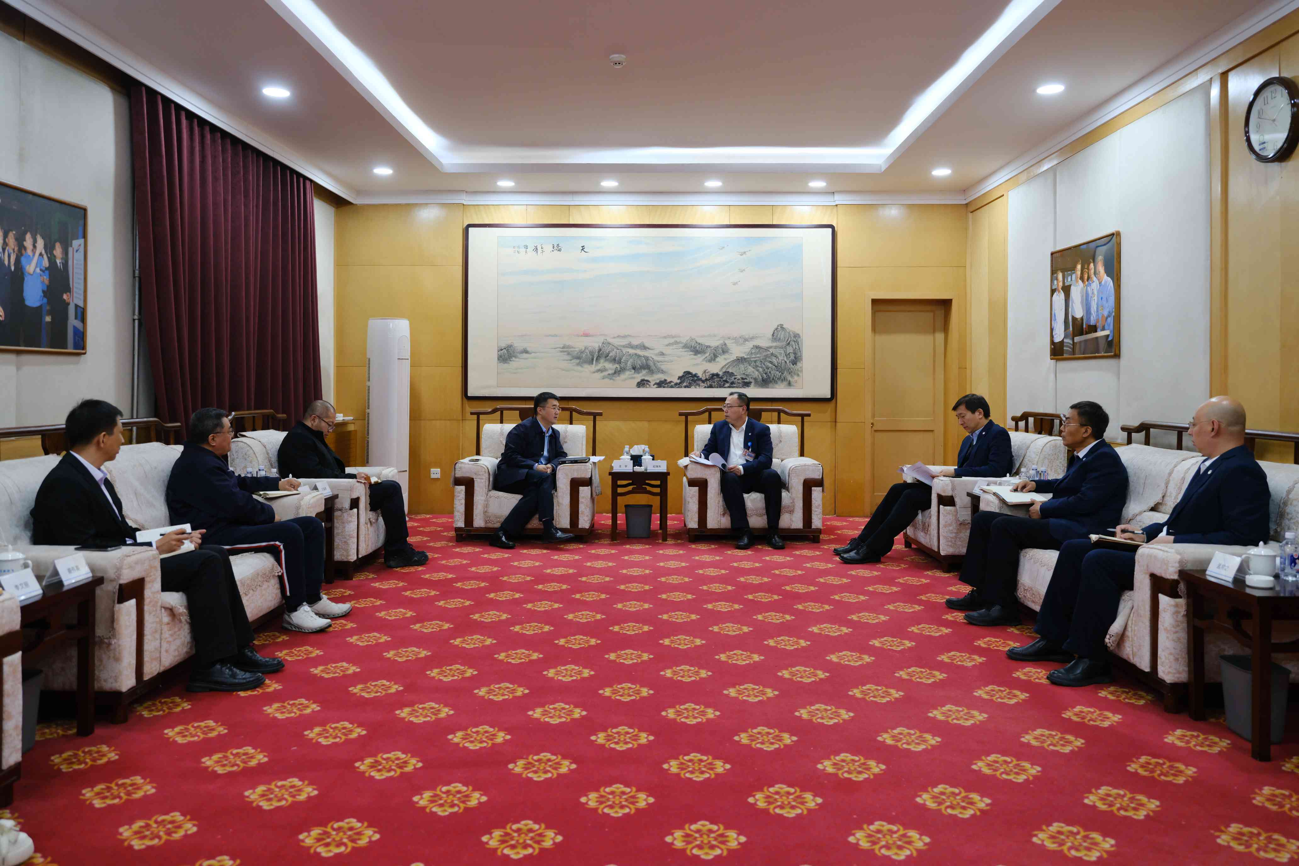 4月25日,欧赔官网工业沈飞党委书记、董事长纪瑞东与欧赔官网集团总司理王宇举行座谈,就增强工业协同,立异相助模式和强化军机、民机领域生长等问题举行深入交流,并告竣共识。 [